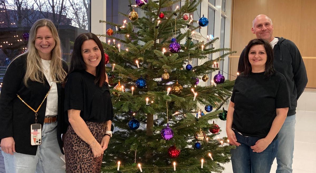 In der Aula steht ein wunderbarer Christbaum. Ermöglicht hat das der Elternverein. Beim Elternsprechtag gab es ein Erinnerungsfoto mit Nicole Ötsch, Obfrau Ina Trimmel, Alexandre Leeb und Gernot Perschon (Birgit Innthaler war leider nicht da). Vielen Dank!