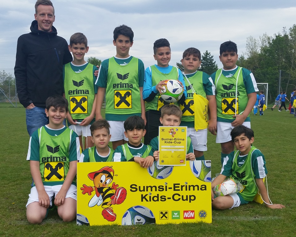 Am Mittwoch fand bei frischem, aber trockenem Wetter der 1. Sumsi-Erima-Kids-Cup in der Anemonensee-Arena statt, erstmals also unter der Patronanz der Raiffeisenbank. Sieben Mannschaften folgten dem Aufruf von Stadtreferent Filip Blazanovic. Einmal mehr seiner Favoritenrolle gerecht wurde die VS Pestalozzi I, die bis auf einen Patzer alle Spieler gewann und somit zum wiederholten Male beste Stadtmannschaft wurde. Wichtig aber war auch Platz 2, denn auch dieser berechtigt zur Teilnahme am Regionalturnier am 12. Mai in Eggendorf. In einem dramatischen Finish durfte sich schließlich die VS Hans Barwitzius über diesen zweiten Rang freuen. Bis zum Schluss waren es eigentlich die Kicker der PVS Sta. Christiana (siegten als einziges Team gegen den Turniersieger mit 3:0), die auf Kurs Richtung Platz zwei waren. Weil sie aber in den letzten beiden Spielen jeweils in wirklich letzter Sekunde ein Gegentor kassierten, fielen sie schließlich auf Rang 4 zurück. Auf Platz 3 davor reihte sich auch noch das Zweierteam der VS Pestalozzi ein. Auf den Rängen folgten die VS Otto Glöckel, die VS Rudolf Scheicher sowie die VS Rudolf Wehrl. Bei der Siegerehrung übernahm Raiffeisen-Vertreter Norbert Handler die Übergabe der Pokale. Die beiden Erstplatzierten traten zur Siegerehrung bereits in den neuen Raika-Dressen an, die sie auch in der nächsten Runde tragen werden. Viel Glück dafür! Der größte Dank gilt aber den Spielerinnen und Schülern, die ein faires Turnier mit vielen spannenden Spielen und schönen Toren spielten…