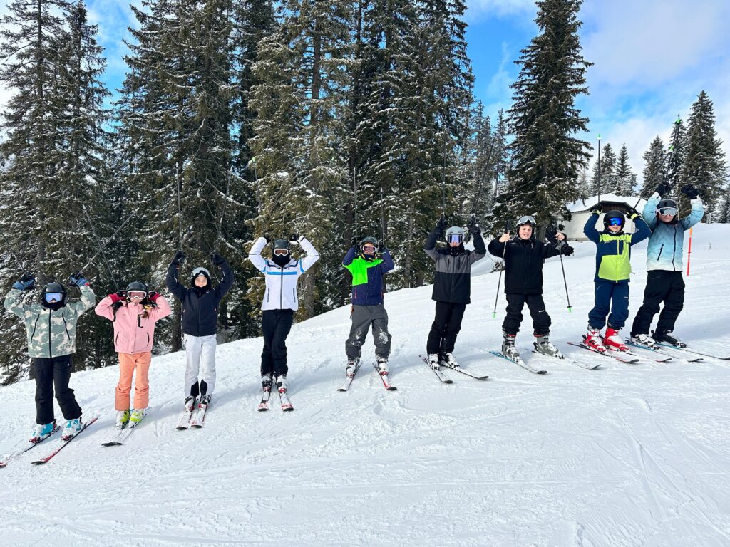 Der Montag, der erste vollständige Skitag, begann pünktlich um 7.30 Uhr beim Frühstück. Manche noch halb im Traum, andere schon voller Energie. Um 9.00 Uhr standen die Wiener Neustädter jedenfalls geschniegelt und geschniegelt als Erste beim Sessellift. Wer hätte gedacht, dass Jugendliche freiwillig so früh auf der Piste stehen? Schon nach dem Skitag in St. Corona und den ersten Übungen gestern waren deutliche Fortschritte zu sehen: Kurven wurden sicherer, Bremsmanöver eleganter und Stürze seltener – zumindest meistens. Das Wetter zeigte sich zunächst typisch winterlich: Schneefall und eher bescheidene Sicht am Vormittag. Doch am Nachmittag wurde es deutlich freundlicher, und sogar die Sonne ließ sich kurz blicken – vermutlich, um zu überprüfen, ob noch alle da sind. Die Schülerinnen und Schüler aus Wiener Neustadt zeigten sich jedenfalls top motiviert und kaum zu bremsen. Am Abend wartete dann die Qual der Wahl: Schneeschuhwanderung oder Kegeln standen auf dem Programm, während andere lieber in der Halle turnten oder bei Brettspielen ihre taktischen Fähigkeiten unter Beweis stellten. Da sich allerdings nicht alle an die Hausregeln hielten, mussten einige noch Spezialaufgaben erledigen – sagen wir so: Auch abseits der Piste kann man ins Schwitzen kommen. Am Abend ist es ruhig geworden. Alle waren müde, die Beine schwer, und die Betten wirkten besonders einladend. Bereit für Tag 3!