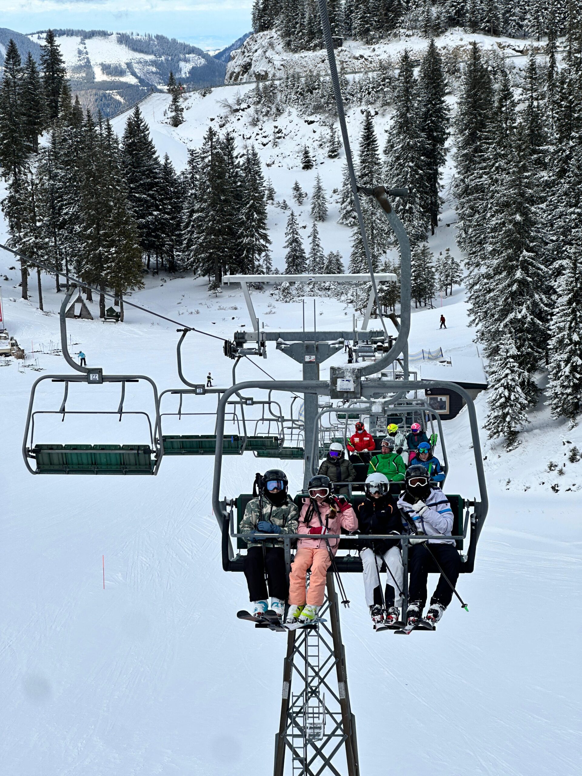 Der Montag, der erste vollständige Skitag, begann pünktlich um 7.30 Uhr beim Frühstück. Manche noch halb im Traum, andere schon voller Energie. Um 9.00 Uhr standen die Wiener Neustädter jedenfalls geschniegelt und geschniegelt als Erste beim Sessellift. Wer hätte gedacht, dass Jugendliche freiwillig so früh auf der Piste stehen? Schon nach dem Skitag in St. Corona und den ersten Übungen gestern waren deutliche Fortschritte zu sehen: Kurven wurden sicherer, Bremsmanöver eleganter und Stürze seltener – zumindest meistens. Das Wetter zeigte sich zunächst typisch winterlich: Schneefall und eher bescheidene Sicht am Vormittag. Doch am Nachmittag wurde es deutlich freundlicher, und sogar die Sonne ließ sich kurz blicken – vermutlich, um zu überprüfen, ob noch alle da sind. Die Schülerinnen und Schüler aus Wiener Neustadt zeigten sich jedenfalls top motiviert und kaum zu bremsen. Am Abend wartete dann die Qual der Wahl: Schneeschuhwanderung oder Kegeln standen auf dem Programm, während andere lieber in der Halle turnten oder bei Brettspielen ihre taktischen Fähigkeiten unter Beweis stellten. Da sich allerdings nicht alle an die Hausregeln hielten, mussten einige noch Spezialaufgaben erledigen – sagen wir so: Auch abseits der Piste kann man ins Schwitzen kommen. Am Abend ist es ruhig geworden. Alle waren müde, die Beine schwer, und die Betten wirkten besonders einladend. Bereit für Tag 3!