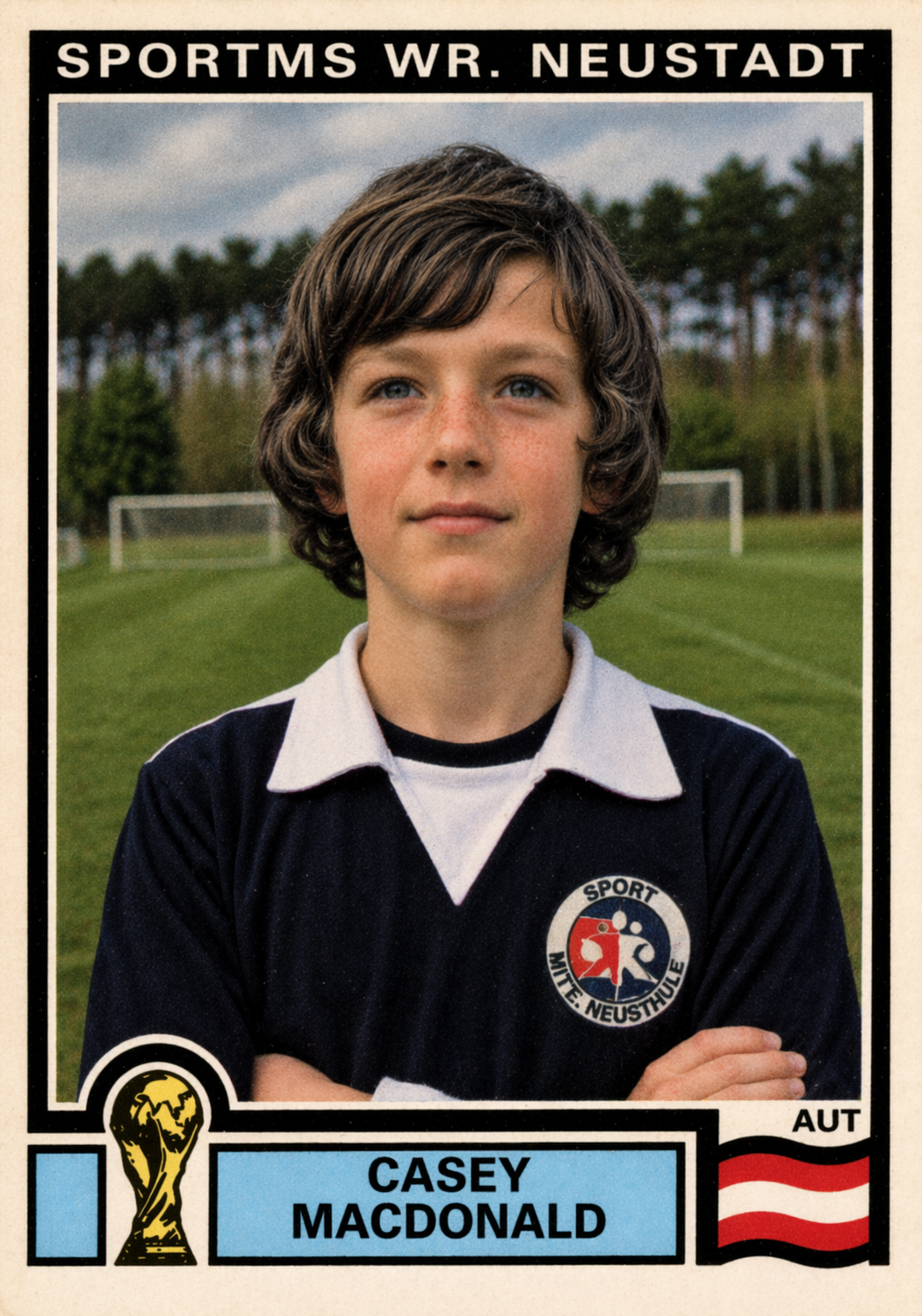 Mittwoch Früh dauerte das Aufstehen in der Sportschule Lindabrunn schon ein wenig länger. Das Laktat arbeitet in den Körpern von Trainern und Spielern. Nach dem Frühstück ging es in den Lehrsaal. Die erste Halbzeit des Zwettl-Tests wurde gemeinsam angeschaut und analysiert. Danach ging es schon auf den Platz. Rondos, Torschussübungen sowie Eckballverianten wurden eingeübt und gefestigt. Nach dem Mittagessen wurde zwei Stunden gelernt, ehe es wieder raus ging, dann schon bei wirklich sommerlichen Temperaturen. Bevor es unter die Dusche ging, folgte eine Yoga-Einheit mitten auf dem Platz. Nachdem das Abendessen vertilgt war, wurde Halbzeit zwei des Zwettl-Tests analysiert. Die Spieler bekommen morgen eine KI-Spielbewertung und Interpretation, damit sie ihre Leistung besser einschätzen können. Schließlich ging es auch schon auf die Zimmer, Champions League war angesagt, doch das Entsetzen war groß, als die Nachricht durchdrang, dass das Bayern Real-Spiel nur auf Canal plus läuft und es somit bei Arsenal gegen Sporting bleibt. So ganz nebenbei hat die U13 ein eigenes Label gestartet. Zur Erinnerung an die Fußball-WM 1978 in Argentinien wurden Panini-Sticker im Vintage-Format gestaltet. Sehen echt lässig aus und werden wohl wie die warmen Semmeln weggehen…