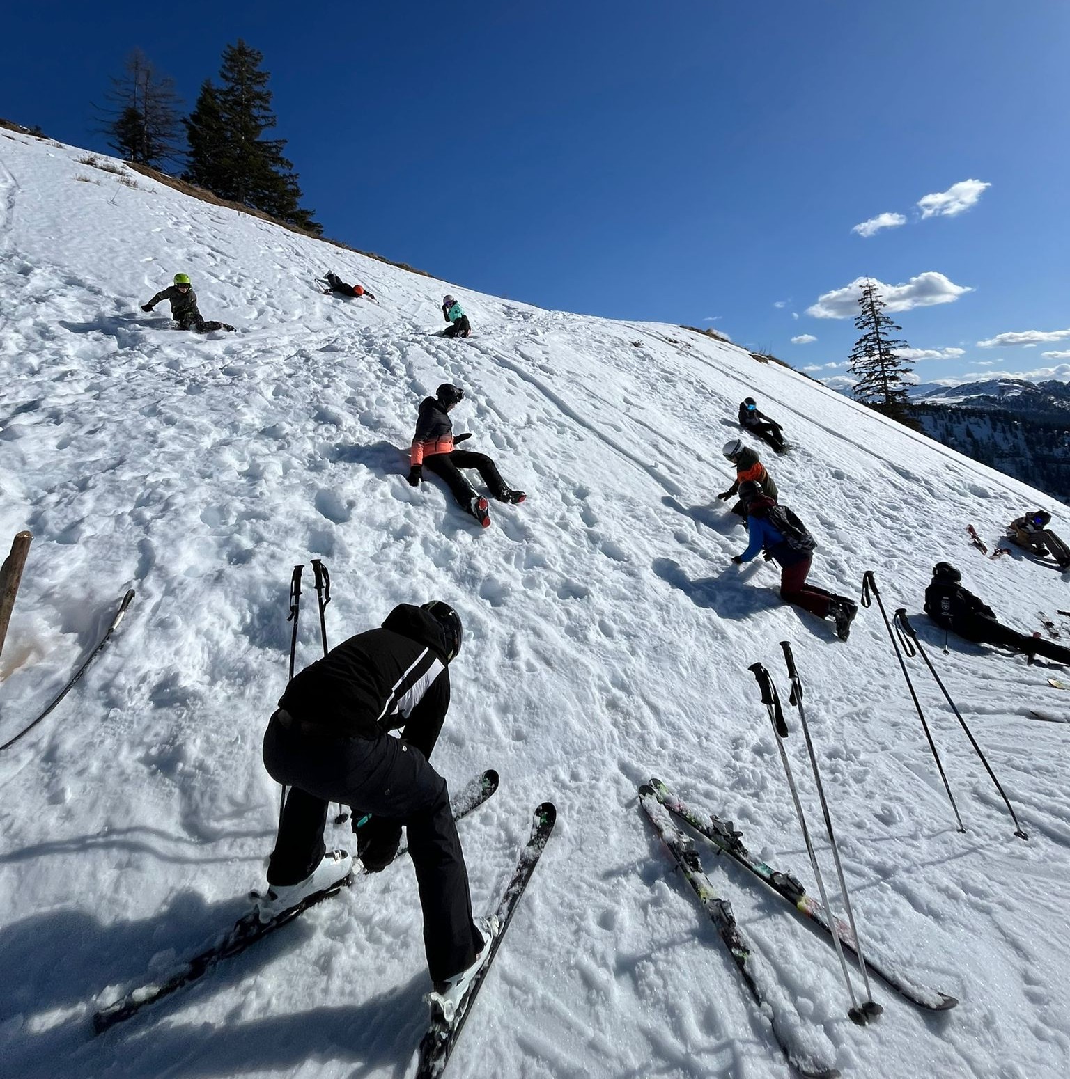 Nach Redaktionsschluss ereignete sich gestern Abend Unfassbares: Gegen 22.00 Uhr erblickte Herr FL Andreas Samwald auf seinem Rundgang eine dunkle Gestalt auf dem Gang, wo die Zimmer liegen. Als er das Licht aufdrehte, war er komplett perplex: Ein Schüler stand in voller Skimontur vor ihm. Skihose, Skijacke, Sturmhaube, Brille und Helm. Kein Pyjama, keine Häschenpantoffeln. Und das eine Stunde nachdem die Nachtruhe ausgerufen worden war. Des Rätsels Lösung: „Traust dich nie, in Skikleidung auf den Gang zu gehen!“ Wenn man solche Zimmerkollegen hat, braucht man keine Feinde mehr. Die Strafe wurde dem reuigen Täter nach einer Lehrerabstimmung (7:0-Stimmen) erlassen, im Gegenteil: Für diesen Gag wurde er sogar extra gelobt. Mittwoch Früh um 6.45 Uhr kam eine neue Wecktechnik zum Einsatz: Sich rückwärts auf den schlafenden Schüler zu setzen. Beim Frühstück schilderte eine 3c-Schülerin die Geschehnisse ihres Alptraums. Sie sprach dabei so schnell, dass die Zusammenhänge nicht ganz erfasst werden konnten. Es ging jedenfalls um ein Einhorn, ein Schwert, Sponge Bob, Herrn FL Blazanovic und um einen Planeten. Am Ende waren alle tot. Bis auf das Schwert! Was wir daraus lernen: Hände weg von übermäßigem Süßigkeitenkonsum. Für die zukünftigen Skikurs-Checklisten wird Magnesium ein wichtiges Thema werden. Das Ausrücken aus dem Skikeller ging langsamer als sonst vonstatten. Ausnahme waren unsere beiden Profigruppen Sahlenegger und Samwald, die am Mittwoch sage und schreibe 44 Kilometer runterrissen. Herr Samwald revanchierte sich für die Attacke eines Holländers am Vortag (wir berichteten) und öffnete einem anderen Holländer beim Warten am Lift die Bindung. Domino-Day ist ein Klacks dagegen! Auch die anderen Gruppen kamen am Mittwoch auf ihre Rechnung. Frau FL Lisa Schön war Ersthelferin beim Crash einer Skifahrerin. Vorbildlich sicherte sie die Unfallstelle ab und setzte den Notruf ab. Gute Besserung an die Dame! Drei Damen aus der 3b lösten beim Verlassen des Sesselliftes eine Kettenreaktion aus. Zuerst öffneten sie den Bügel zu spät, dadurch zwickte sich ein Mädl den Ski an der Fußstütze ein, das andere Mädchen blieb mit dem Rucksack irgendwo hängen und die dritte war so kollegial und stürzte mit den anderen beiden aus einer Höhe von 75cm ab. Der Liftwart schüttelte nur den Kopf, vergab aber immerhin ordentliche Noten für die Landung. Eine Begegung der besonderen Art hatte Herr Blazanovic: Als er in die G-Link-Gondel einstieg, erblickte ihn der Schaffner und sagte: „Dich kenne ich. Wo kommst du her? Wie heißt du?“ Es stellte sich heraus, dass die beiden im Dezember 1996 gemeinsam in der Bechtolsheimkaserne in Wr. Neustadt ihren Präsenzdienst angetreten hatten. Herr Blazanovic glaubte bis zuletzt an eine „Achtung Kamera-Verar…“, erst als der Mann von dem Tag erzählte, an dem Herr Blazanovic den Frostschutz aus dem Panzer irrtümlich in seinen Hemdsärmel umleitete, war Herr Blazanovic überzeugt. Schief ging übrigens auch die Rettungsmission des Handys (wir berichteten gestern). Als Herr Samwald an der vereinbarten Stelle eintraf, um das Schüler-Handy in Empfang zu nehmen, war da kein Handy. Dumm (Ski) gelaufen! Heute ging übrigens auch ein Rucksack verloren. Wir geben nicht die Hoffnung auf, ihn morgen wiederzufinden. Essenstechnisch gab´s zu Mittag Kaiserschmarrn und am Abend ein Burger-Buffet. Nach dem Abendessen ging es erstmals in dieser Woche in die kleine Trampolin-Halle und zum Tischtennisspielen. Grundsätzlich vertragen sich Burger und Trampoline kurz hintereinander nicht so, Schwerter und Einhörner aber auch nicht. Vielleicht war es aber auch die Nervosität vor dem Diskoabend, der um 20.00 Uhr begann. Zuerst übernahm Kursleiterin Lisa Schön kraft ihres Amtes die Aufgabe, das zweite Geburtstagskind der Woche mit einer Torte zu würdigen. Dann mutierte sie auch noch zu DJ Schön. Und da standen sie also. Auf der einen Seite der Tanzfläche die Burschen, auf der anderen Seite die Mädchen. Manche trauten sich gleich gar nicht auf´s Parkett, völlig unbewusst nahmen sie sofort die Plätze an der Bar ein. Mitten drin das Animationsteam der Lehrer. Es lief immer nach dem selben Schema ab: Ein paar Dance-Moves nach vor, am besten in der Gruppe, niemals alleine, dann wieder zwei Schritte zurück zur Wand und prüfende Blicke in die Runde, ob man sich eh nicht blamiert hat. Wie ein Blinder am Zebrastreifen tastete man sich langsam in Richtung Eskalation vor. Aber wir dürfen Sie daheim beruhigen: Niemand ging an diesem Abend „All-In“. Dafür gibt´s ein paar Tendenzen, wer mit wem zusammen sein könnte. Die Liste der Paare finden Sie HIER… Mit einer Polonaise endete der beschwingte Abend schließlich. Komplett aufgedreht ging´s zurück auf die Zimmer. Auf die Träume sind wir schon gespannt. Morgen wird´s noch einmal ernst, wenn es ein letztes Mal auf die Piste geht. Abschließende Grüße des Teams gehen heute an alle unsere ehemaligen pensionierten Lehrerkollegen, stellvertretend ließ uns unsere Renate Szokolszky heute grüßen. Ihr fehlt…
